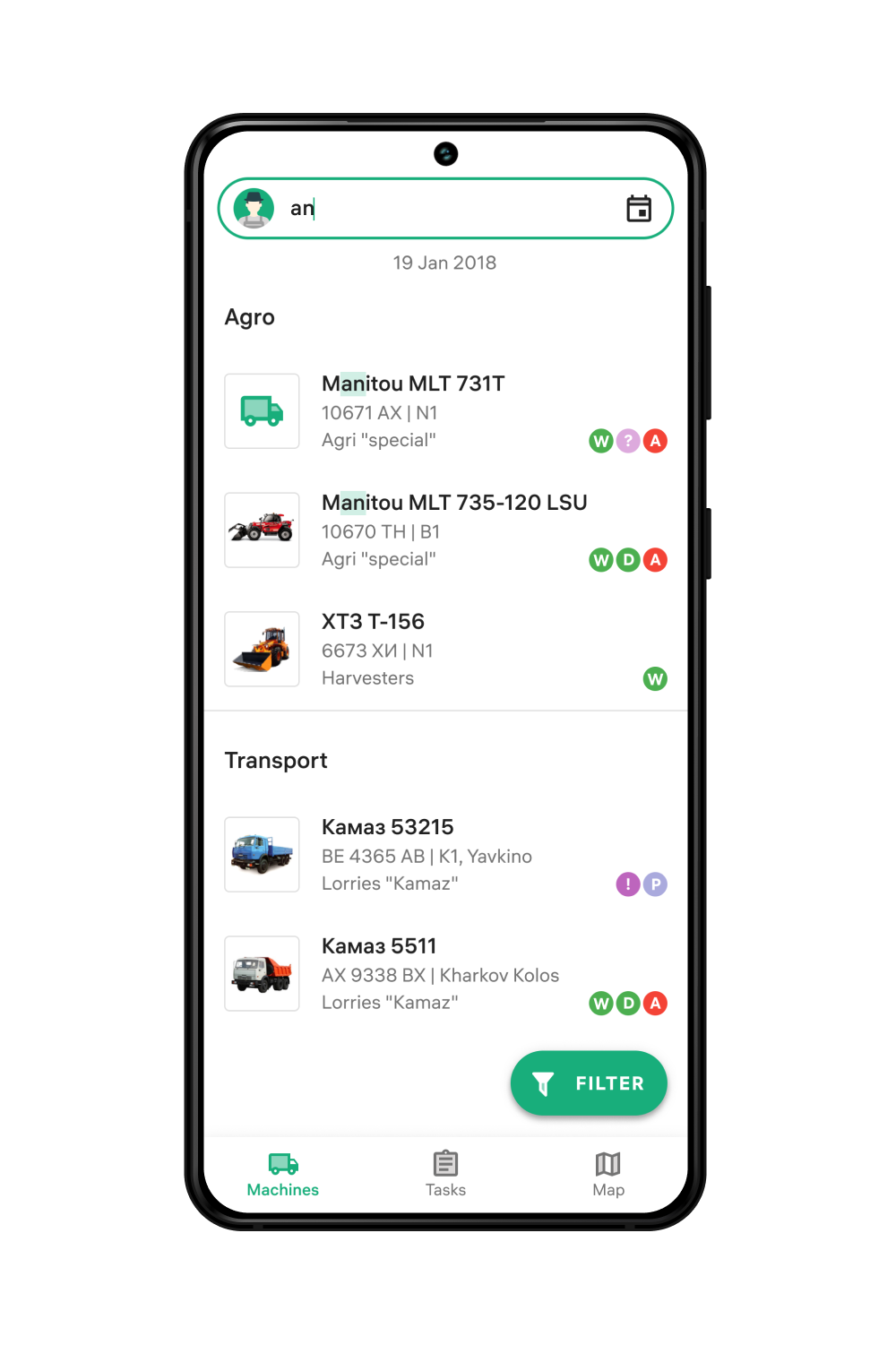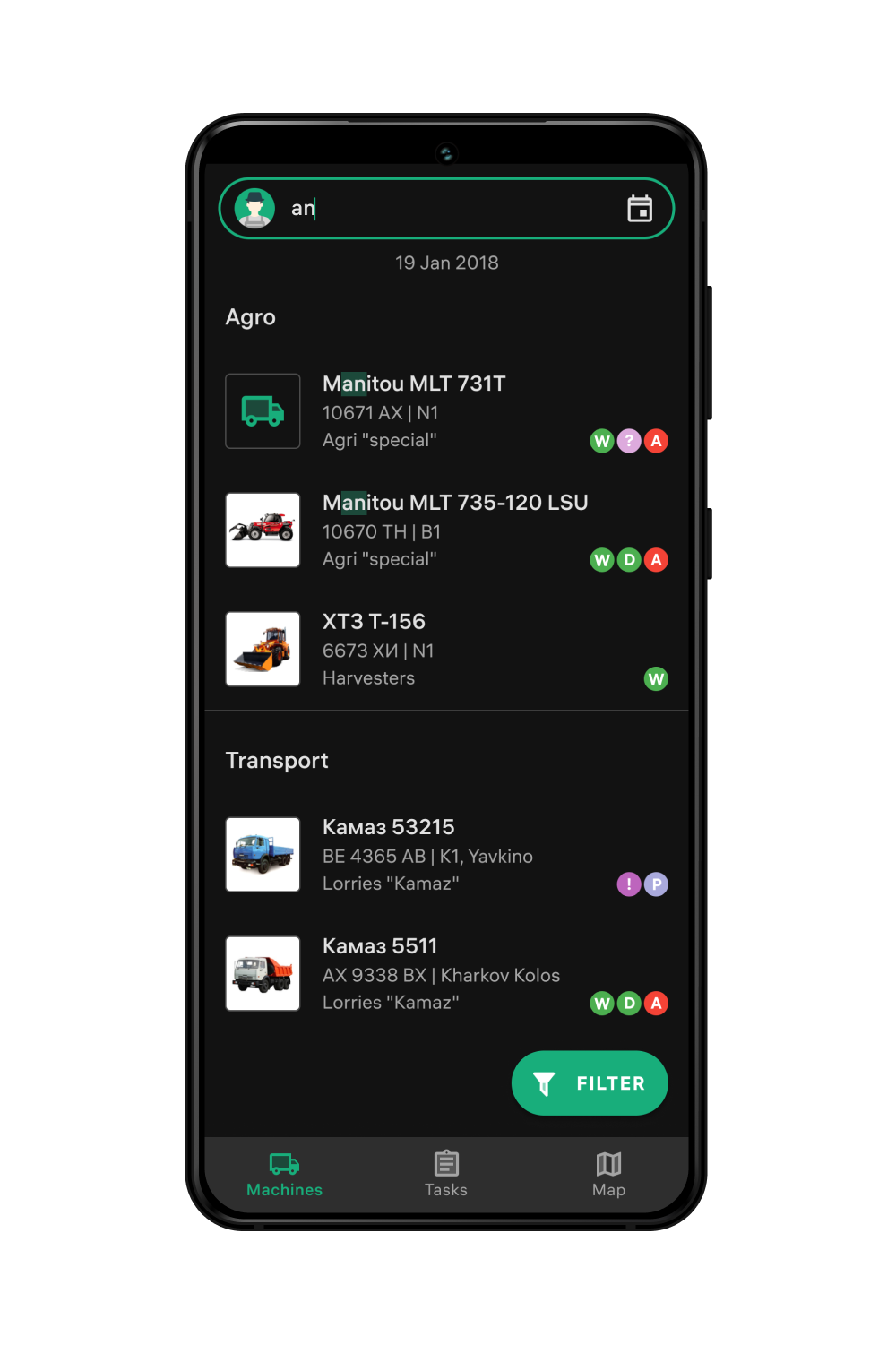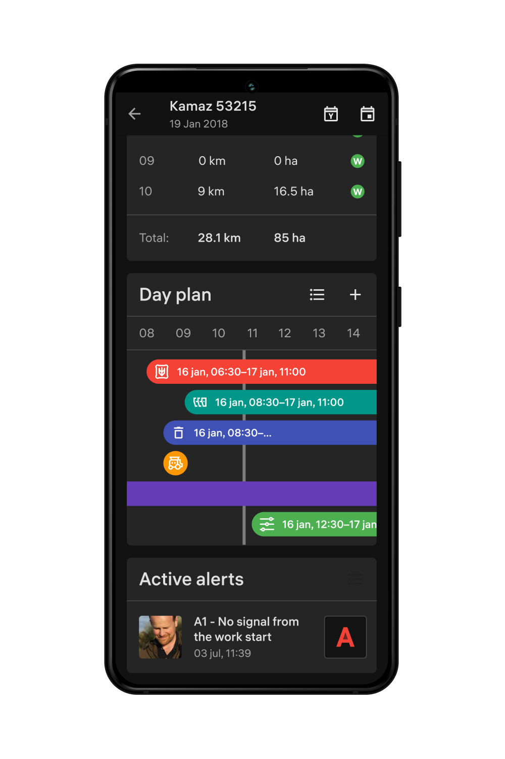Cropio Telematics is a unique module that means integration with the transport monitoring system and allows you to control all of the working machinery in the fields, daily and hourly work, machine performance and movement, to plan the workload for every individual machine and even to receive automatic alerts in such situations as working without a plan, a signal absence and many others.