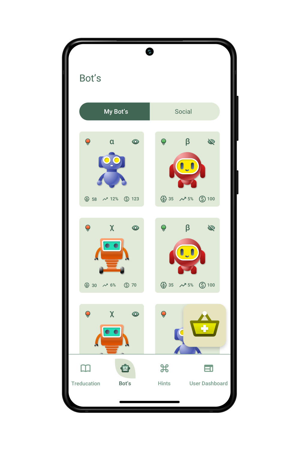 Educational mobile app for crypto trading literacy and trade bots creation without coding.